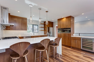 Modern kitchen remodel using flat panel maple cabinets Caeasarstone countertops mitred with waterfall peninsula. Jan 29 2015 - New Espresso with Caesartone Custom Waterall Island Yelp. We save time and money.
